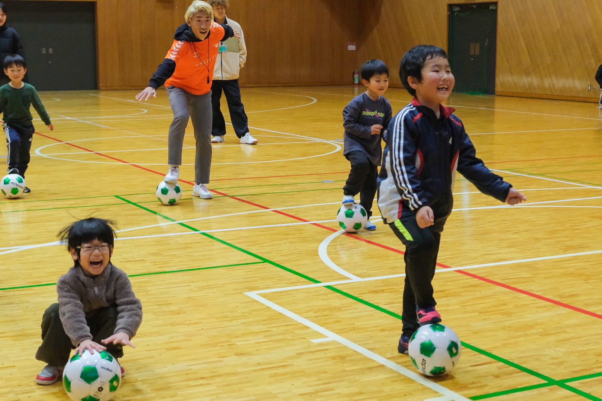 浅川さんが登場するやいなや、子どもたちはボールを蹴り始めました。やる気満々です!