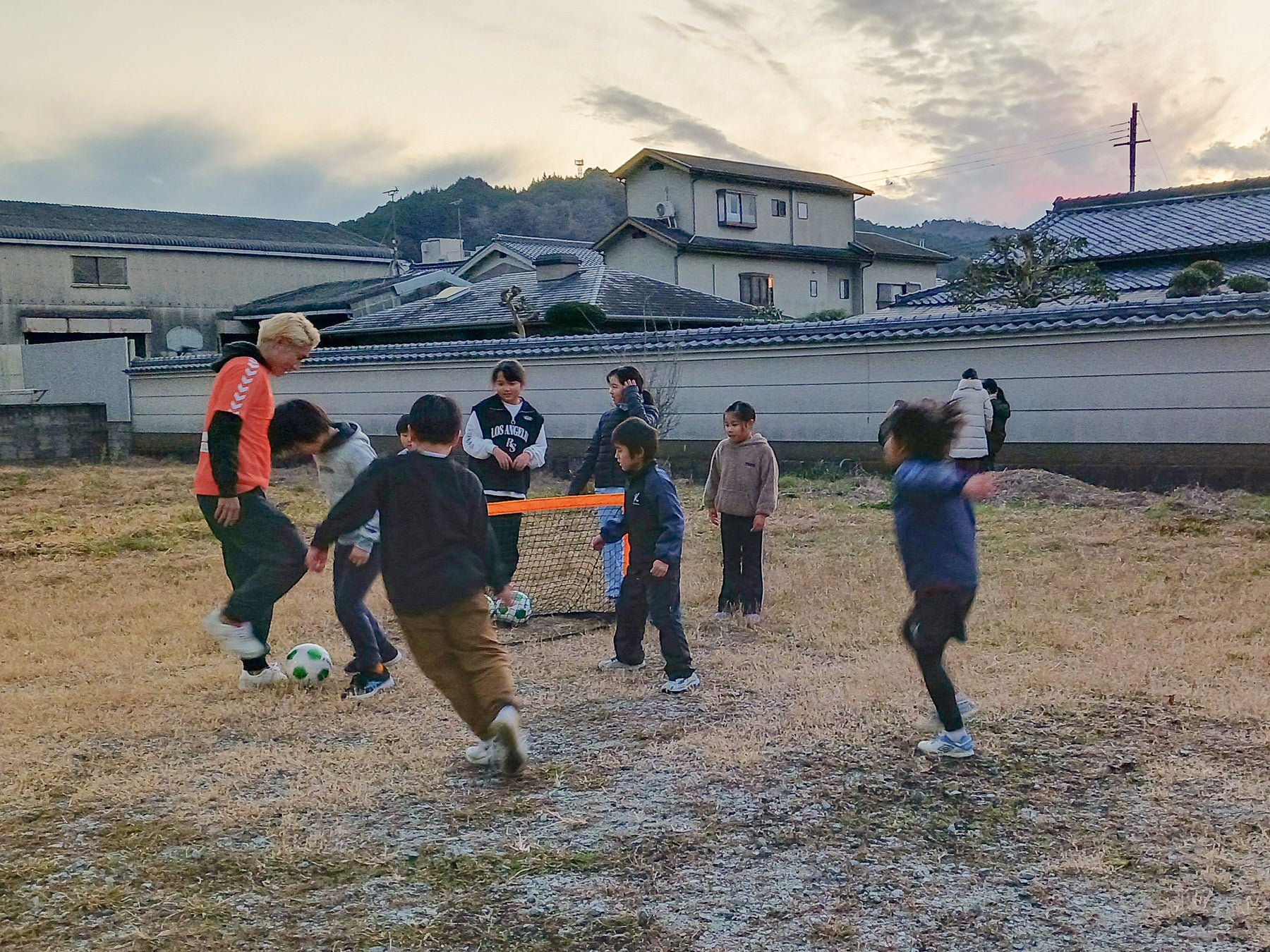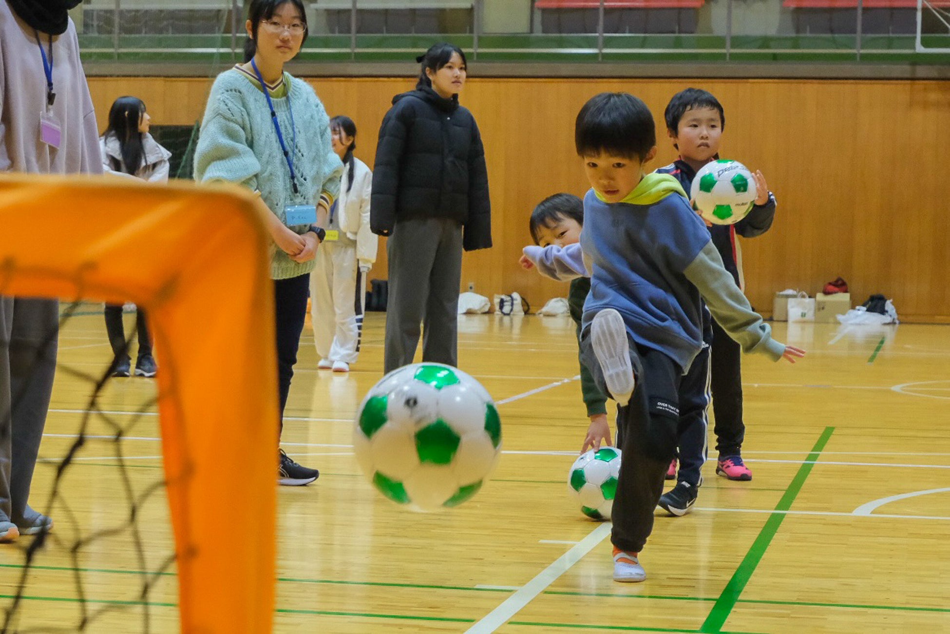 特にチーム対抗戦のサッカーでは、どちらが先にゴールを入れられるか、子どもたちは白熱していました。後半、「浅川さん対子どもたち全員」で点を取り合った際は特に大盛り上がりでした。
