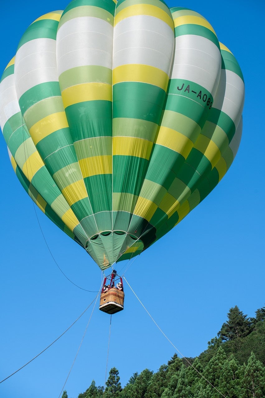 ・熱気球に乗って、山に囲まれた大自然を満喫できます。