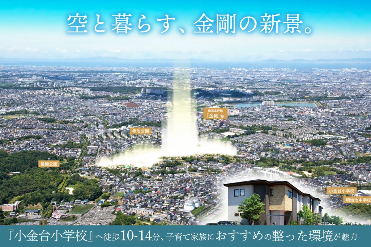 南海高野線「金剛」駅徒歩圏、難波まで直通22分の軽快なフットワークに加え、周辺には日々の暮らしを充実させてくれる施設が点在。多彩なショッピング施設や、毎日を豊かにしてくれる公園や自然環境、そして家族の健康に欠かせない医療機関や公共施設も充実しています。