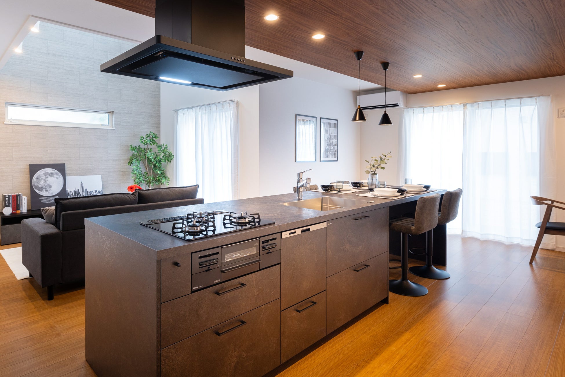 毎日使うキッチンは、使いやすさはもちろん、見た目にもこだわってストレスなく過ごせる場所にしたい!そんな理想を求めて人気のキッチンメーカー「GRAFTEKT」のアイランドキッチンを導入しました。デザイン性の高いキッチンが部屋の中心にあることで、空間全体をスタイリッシュに演出できます。