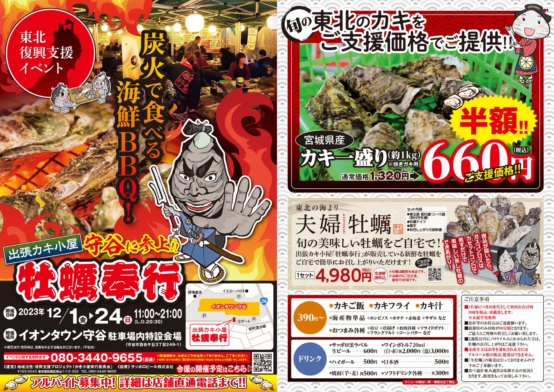 通常1,320円を、東北復興支援価格としてなんと1盛り660円で提供する。(※生食用牡蠣の提供は無し)