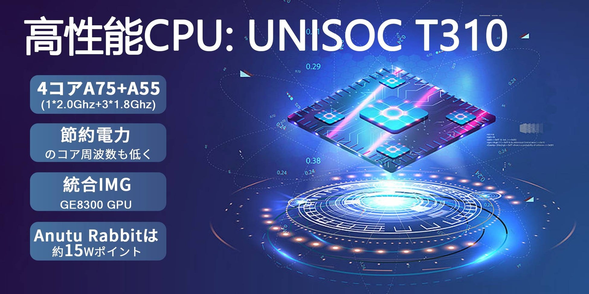 | CPU | UNISOC T310、4コア 2.0GHz |