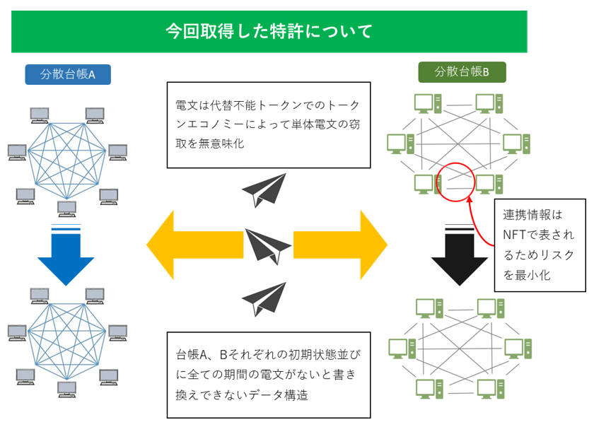 この特許技術を活用することで、例えばブロックチェーン同士でのセキュアなデータ連携ができるため、ブロックチェーンを基盤としたアプリケーションにおけるセキュリティリスクの軽減に寄与することが想定されます。