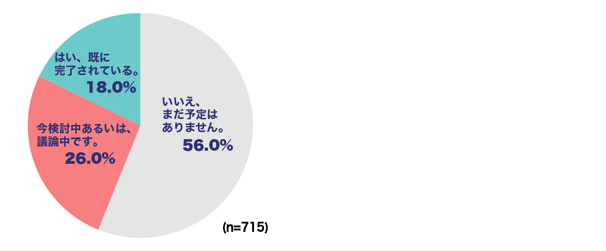 「いいえ、まだ予定はありません」56%、「今検討中あるいは、議論中です」26%、とまだ詳細が決まっていないグループが約半分を占めていて、地域移行が完了しているのは18%ということがわかりました。