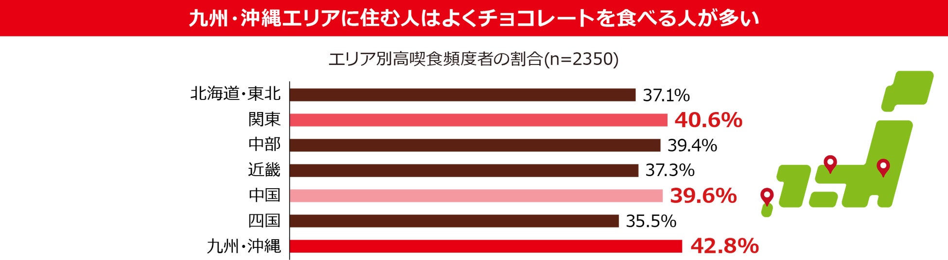 九州・沖縄エリアに住む人はよくチョコレートを食べる人が多い