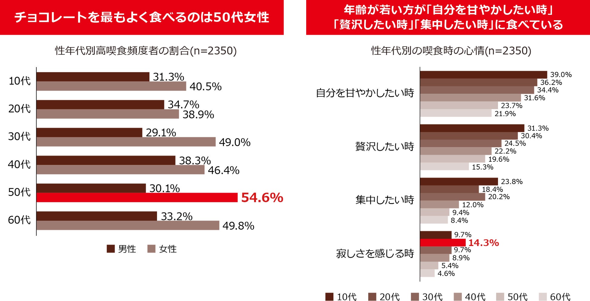 調査対象 :チョコレートを月に1回以上喫食する全国10~60代男女2350名