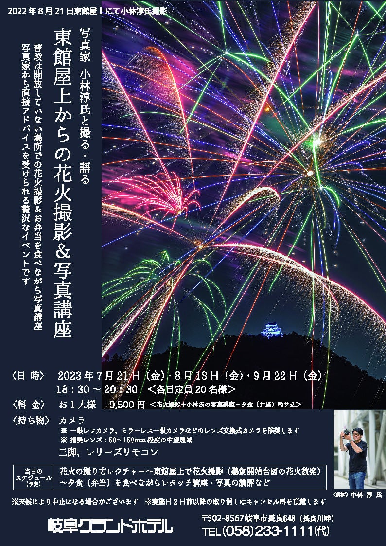 岐阜グランドホテル「写真家 小林淳氏と撮る・語る 東館屋上からの花火撮影&写真講座」を開催します。