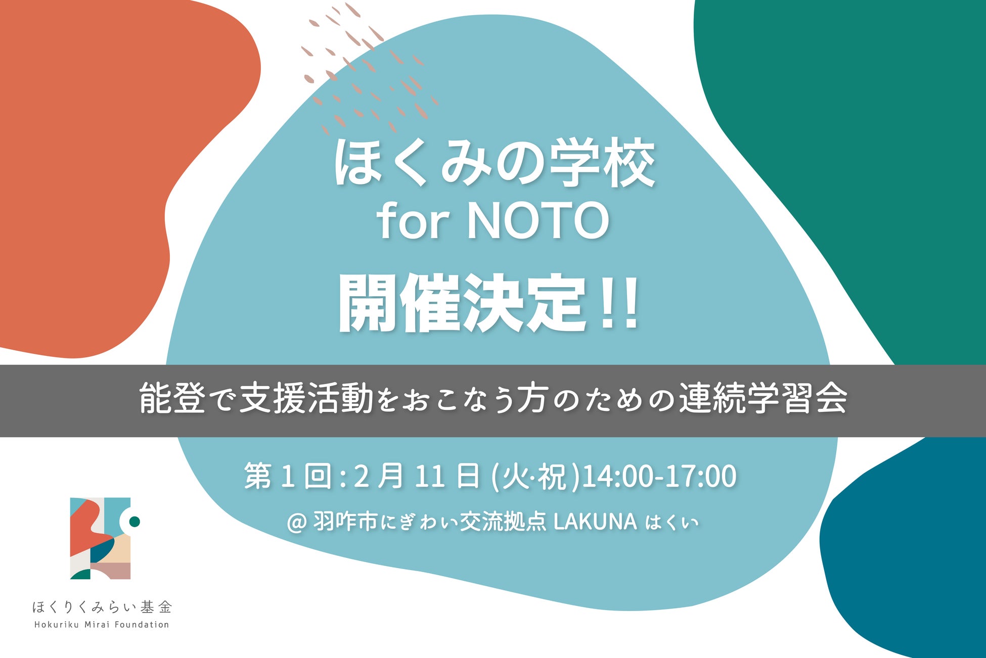 能登被災地の支援団体を対象とした全3回の学習会「ほくみの学校 for NOTO」を開催します/第1回は2月11日(火・祝)に開催