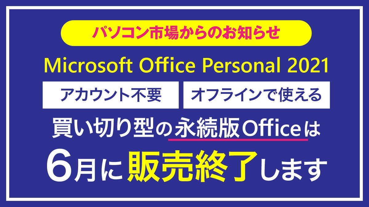 株式会社メディエイター(所在地:福岡県中央区)が運営する、中古パソコン販売を主力とするパソコン市場では、Microsoft社の販売方針変更に伴い、2024年6月末をもって、当店で取り扱っているお買い得なMicrosoft Office プレインストール版の販売を終了することをお知らせいたします。当店では同等の後継商品をご用意いたしますが、値上げを伴う仕様変更となるため、早めのご検討・ご購入をおすすめいたします。