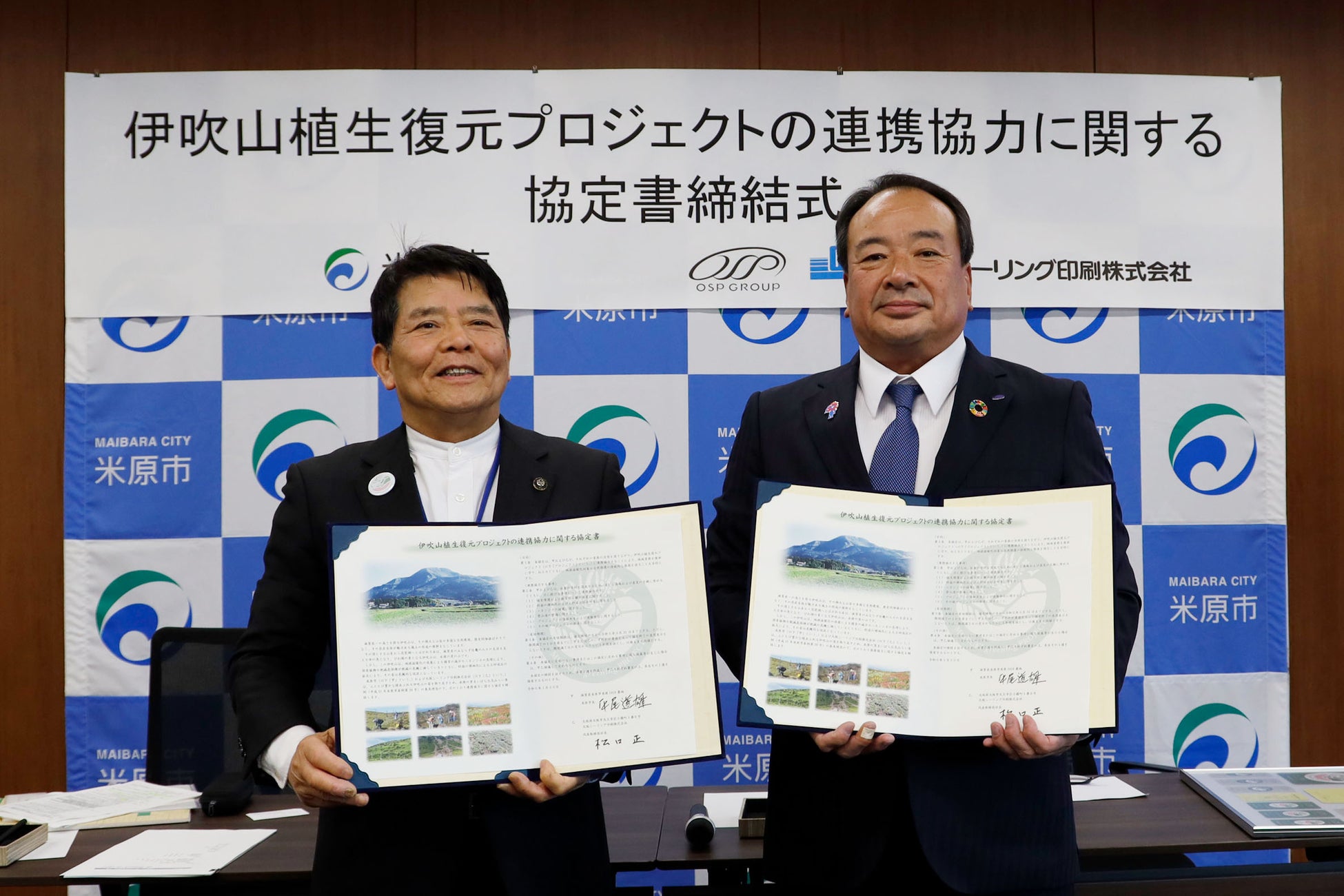本協定は、大阪シーリング印刷株式会社と米原市がそれぞれの資源の活用を図りながら地域の資源を後世に守り、地球温暖化対策や自然保護の持続的な推進を図ることを目的としています。米原市は、大阪シーリング印刷の滋賀工場や、タック紙の製造・販売をしているOSPレーベルストック株式会社の本社があり、グループにとって縁の深い都市です。その市の取り組みのパートナーとなるべく連携協力に至りました。