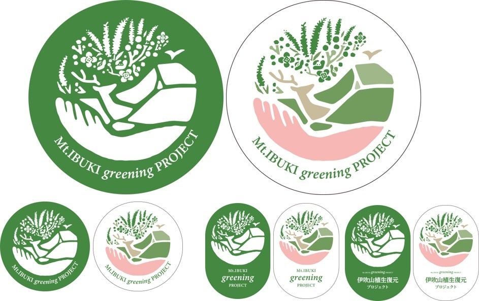 大阪シーリング印刷が長年培った印刷やシール加工技術を活かし、「伊吹山植生復元プロジェクト」の啓蒙活動や推進に活用いただけるよう、プロジェクトのロゴステッカー8種類のデザインを合計14,000枚を寄贈しました。デザインは、人間の手のひらに伊吹山、生息するシカ、草花が描かれたもので、人と動物と植物の最適なバランスをイメージされたものです。