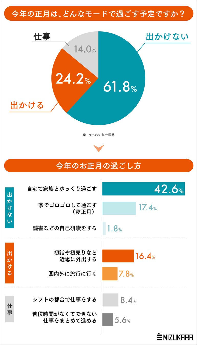 今年の年末年始、みんなのモードは?寝正月の人は仕事満足度も低く、出かける人は仕事にも前向きな傾向