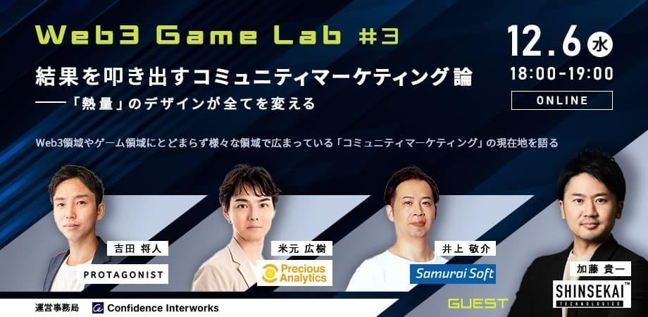 【無料ウェビナー】COO加藤登壇決定!結果を叩き出すコミュニティマーケティング論「熱量」のデザインが全てを変える Web3 Game Lab #3