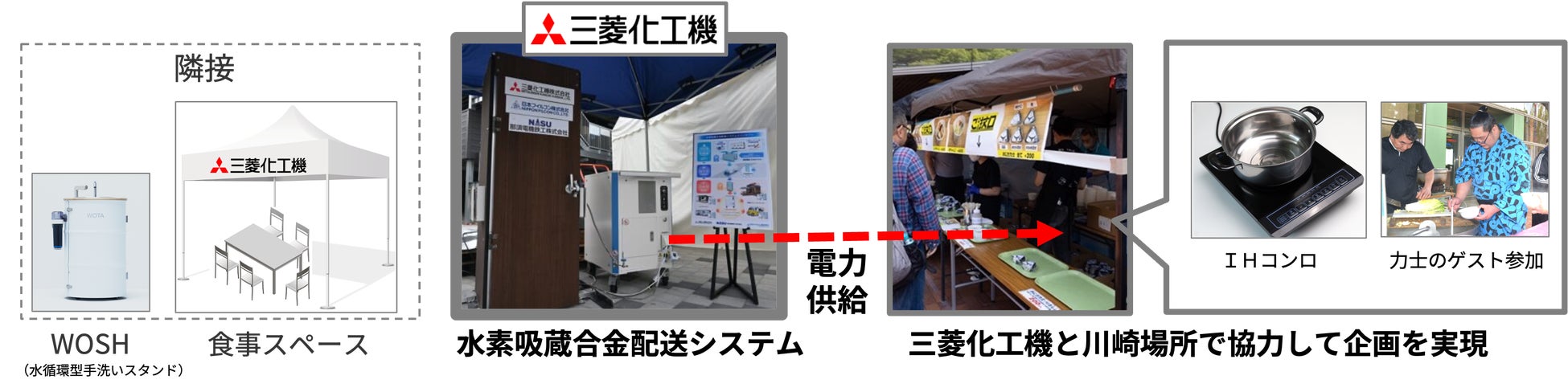 ・会場外の広場に出店する、ちゃんこ店に水素を利用したクリーンエネルギーで電源を供給します