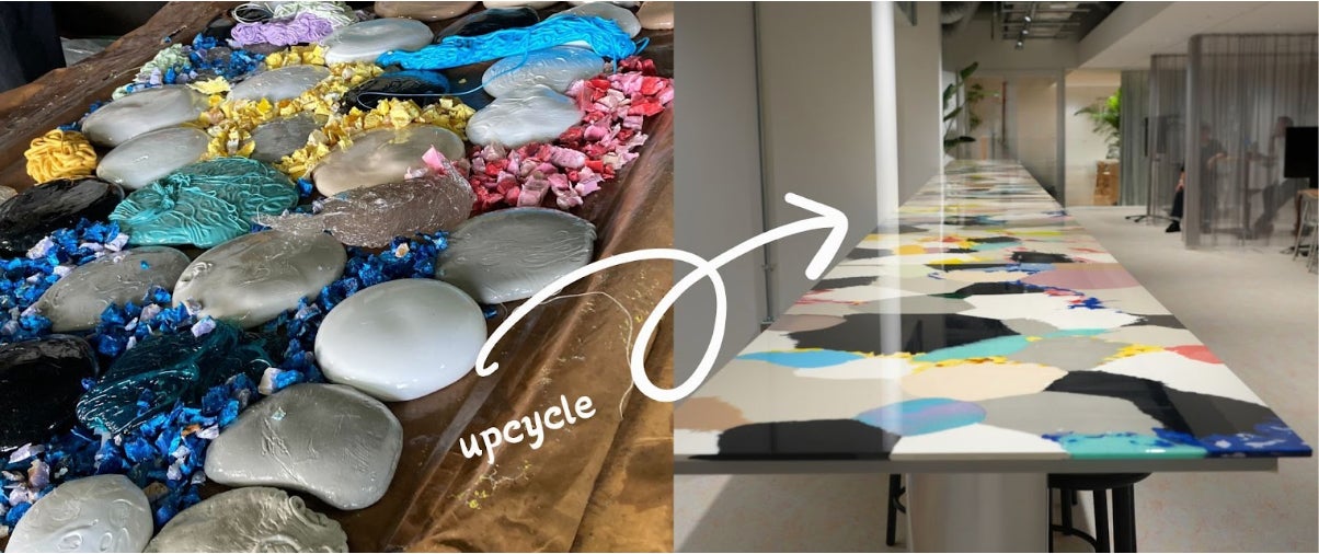 排出物からアートへ—REMAREがコクヨの射出成形排出物を再利用し、オーダーメイドテーブル天板を制作