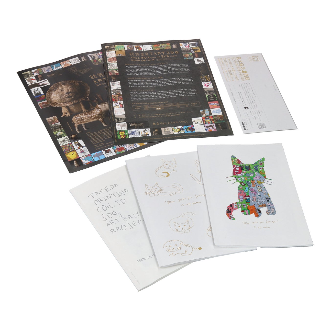 作品説明:障がいを持つ方々が多様な個性や能力を活かして活動できるような取り組みを実施したいとの考えのもと、アールブリュット作品(障がい者アート)を用いて、企業ノベルティ、個展のDM等を制作。特殊色を施し、竹紙や板紙等の用紙特性を生かすことで、個性的な作品がもつ表現の幅をさらに広げた。