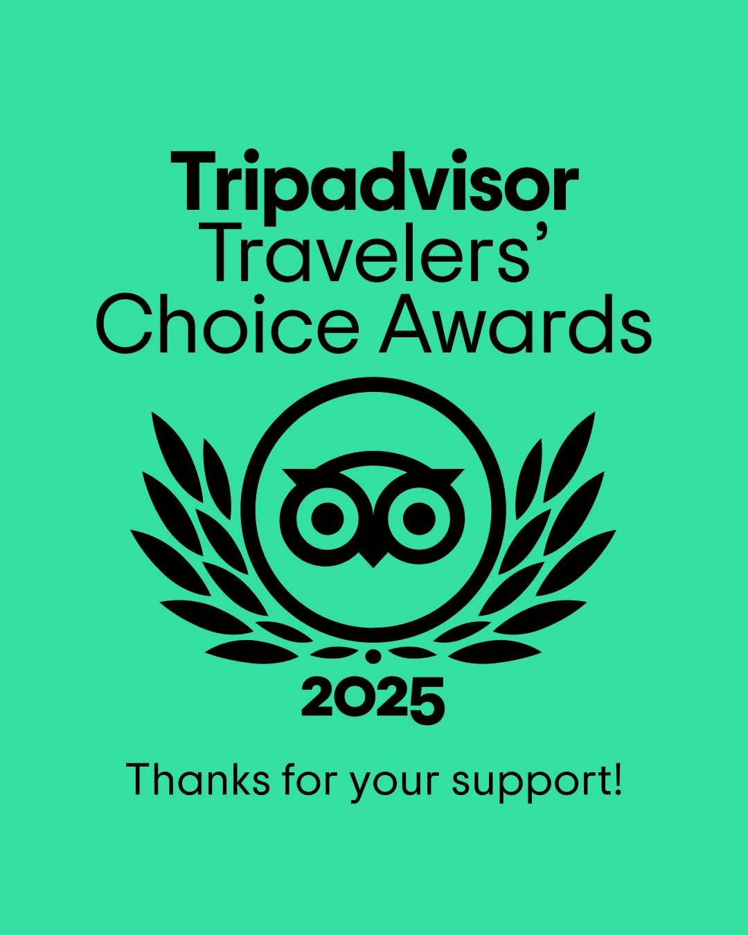 このアワードは、過去12か月間に世界中の旅行者からトリップアドバイザーに投稿された口コミと評価をもとに、一貫して高いホスピタリティを提供している宿泊施設などに贈られるものです。また、同サイトに掲載されている全施設のうち上位10%以内に選ばれた施設のみが受賞する、大変名誉ある賞です。