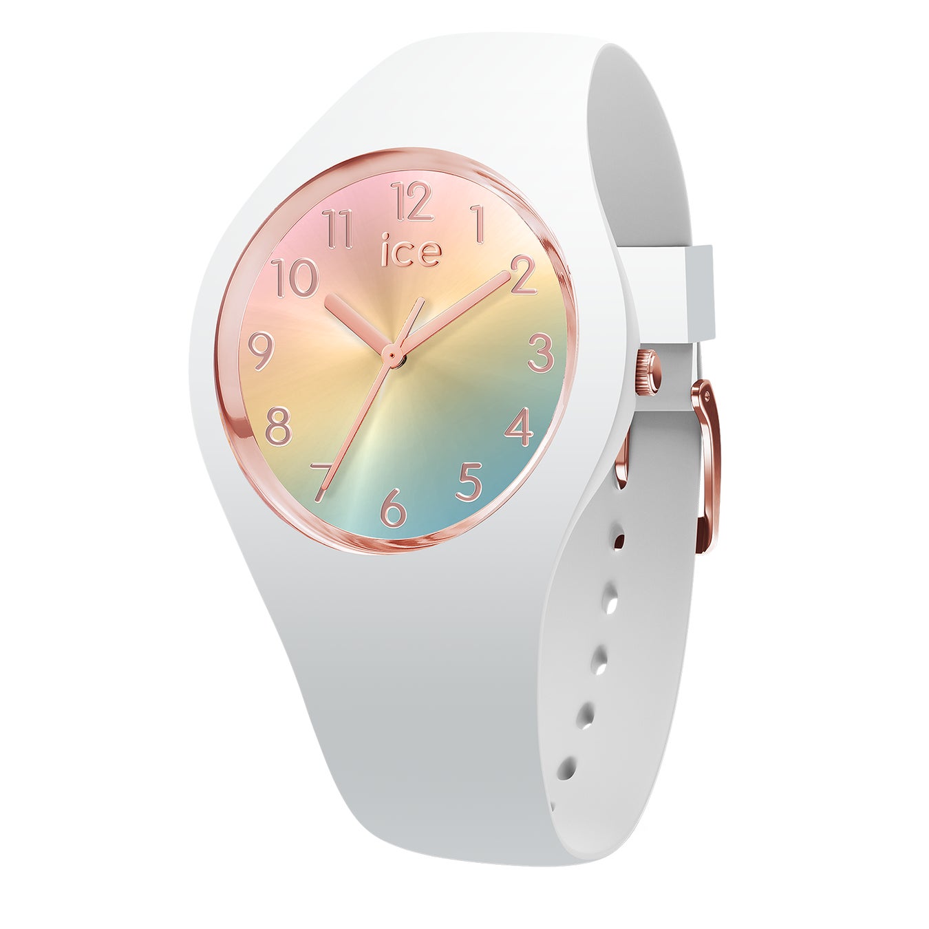 虹をイメージしたカラフルなグラデーションサンレイダイヤルが手元に彩りを与えるモデル。
