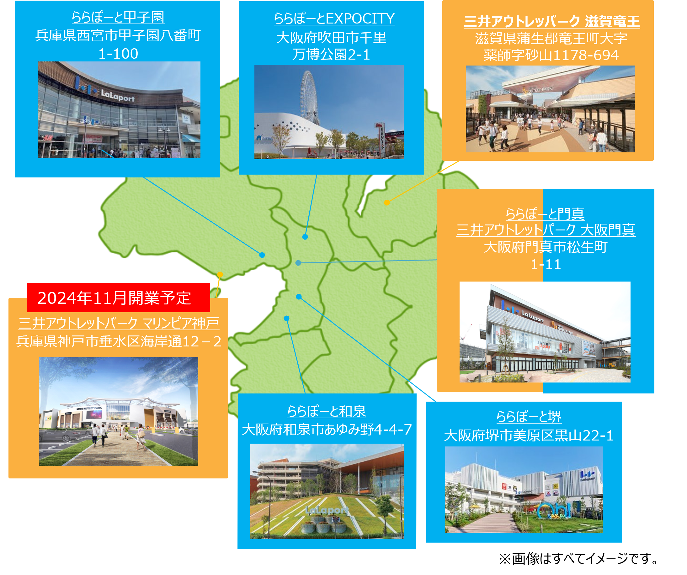 大阪門真、滋賀竜王、マリンピア神戸(2024年11月開業予定)