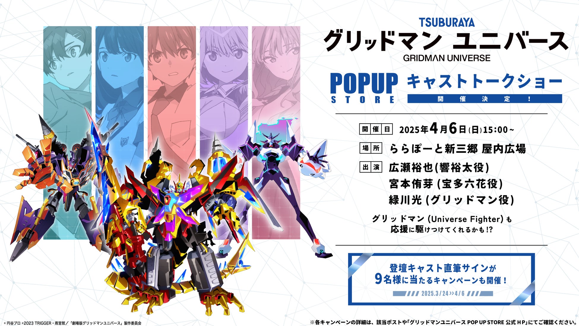 株式会社サトクリフ(本社:東京都千代田区 代表取締役社長:加藤 勝)は、ららぽーと新三郷にて『グリッドマン ユニバース』POPUPクリフストアを、2025年3月24日(月)より開催します。