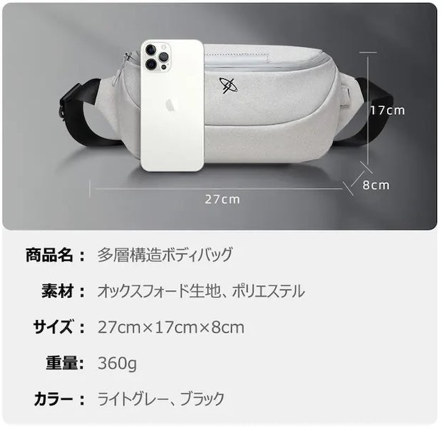 このボディバッグは様々なスタイルにコーディネートしやすいシンプルなデザインを採用しており、
