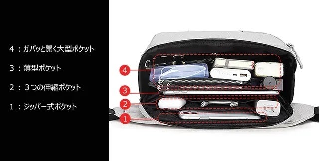 そこで私達は、ボディバッグの使い勝手を向上させ、収納力とファッション性を兼ね備えた