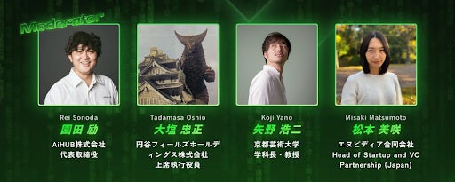 登壇者には、円谷フィールズホールディングス株式会社 上席執行役員 大塩忠正氏、京都芸術大学 学科長・教授 矢野浩二氏、エヌビディア合同会社の松本美咲氏を迎え、業界横断的な視点から最先端の知見を共有。モデレーターは、AIとコンテンツ開発の融合を推進する弊社AiHUB株式会社 代表取締役 園田励が務めます。