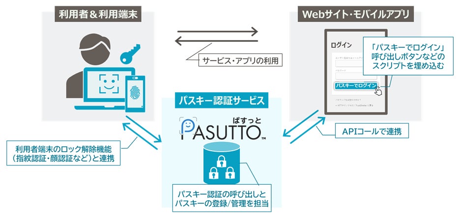 そのような中NTTテクノクロスでは、クラウドセキュリティ「TrustBind」の開発で培った認証連携やAPI(*2)連携などの技術を生かし、さまざまなWebサイト・モバイルアプリにパスキー認証を簡単に導入できるサービス「PASUTTO」を開発しました。