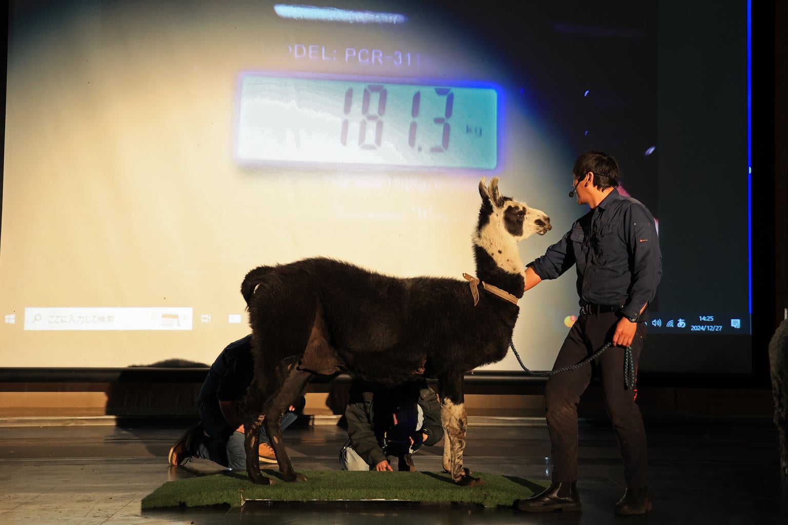 日替わりでステージ上に登場する動物たちの体重を予想して、ご自身のスマートフォンを使用して投票していただくクイズイベント「ぴったんこヘビー」!
