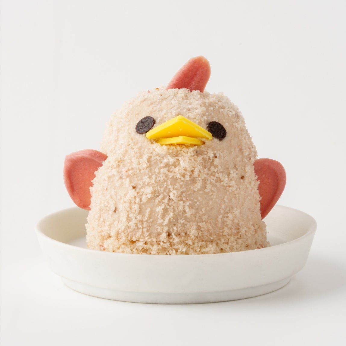 名古屋コーチンの卵プリンと、有田焼が有名な佐賀県で生まれた「さがほのか」のいちごジュレを、いちごミルク味のババロアで包んだぴよりん。今年はさらに‟いちご感”が増しました。