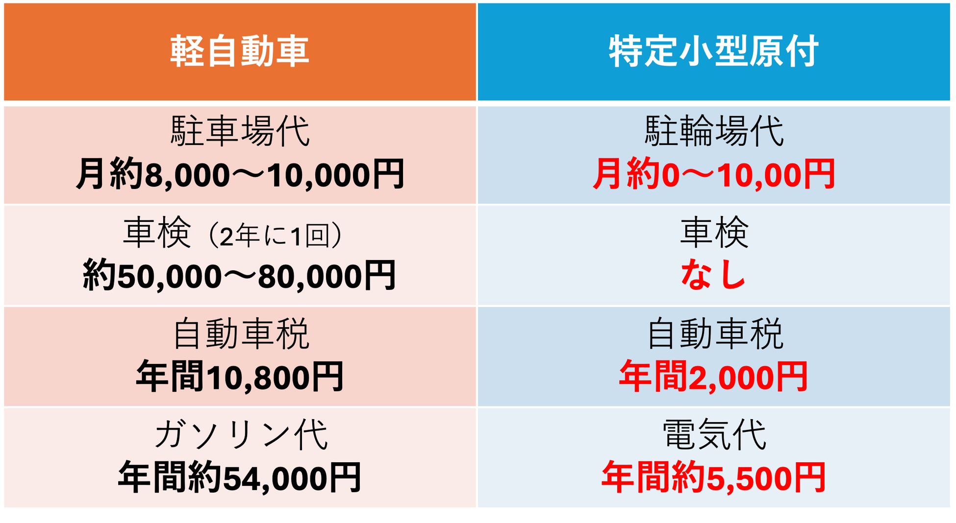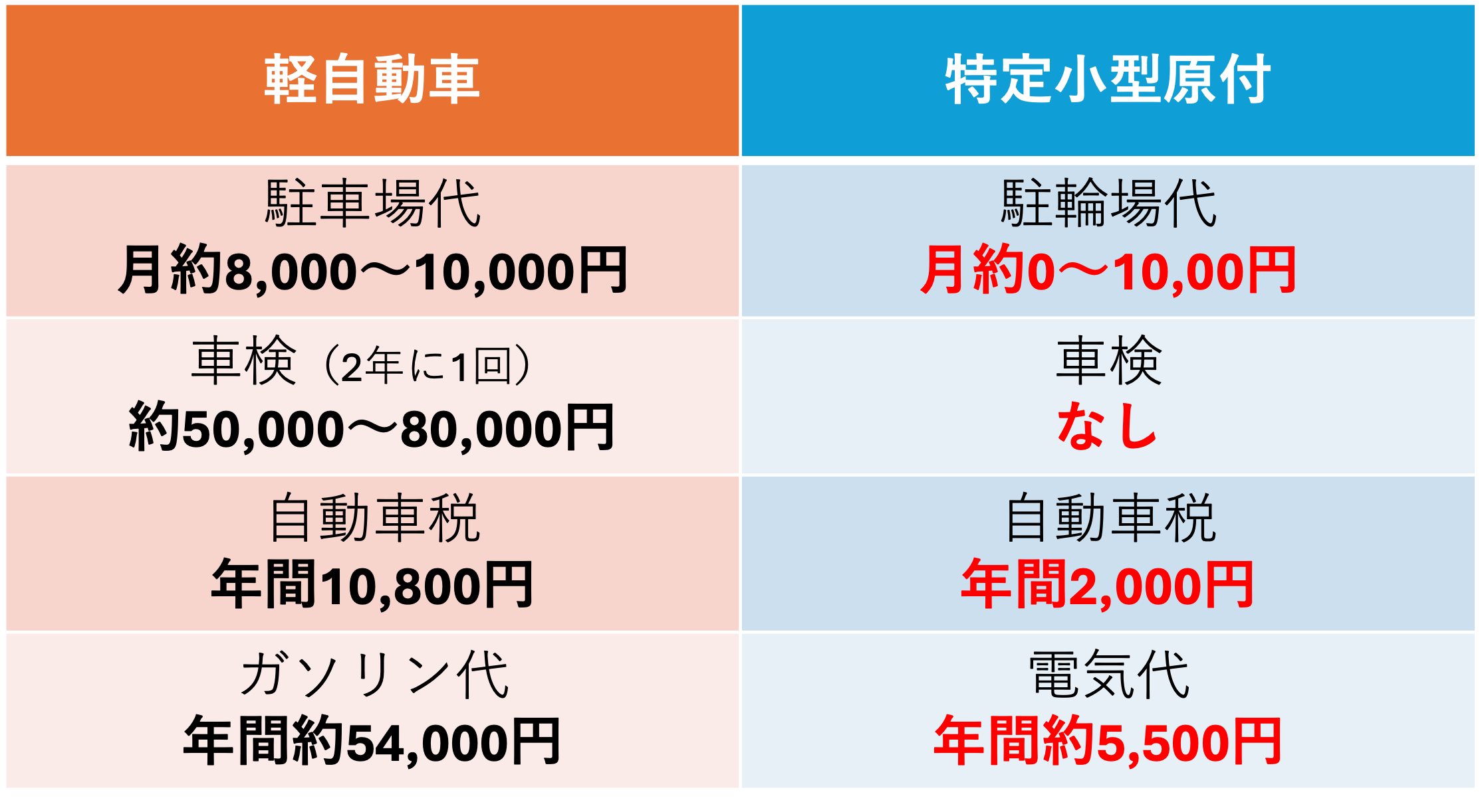 ※ガソリン代は、燃費18km/L・単価160円・月500km走行を想定