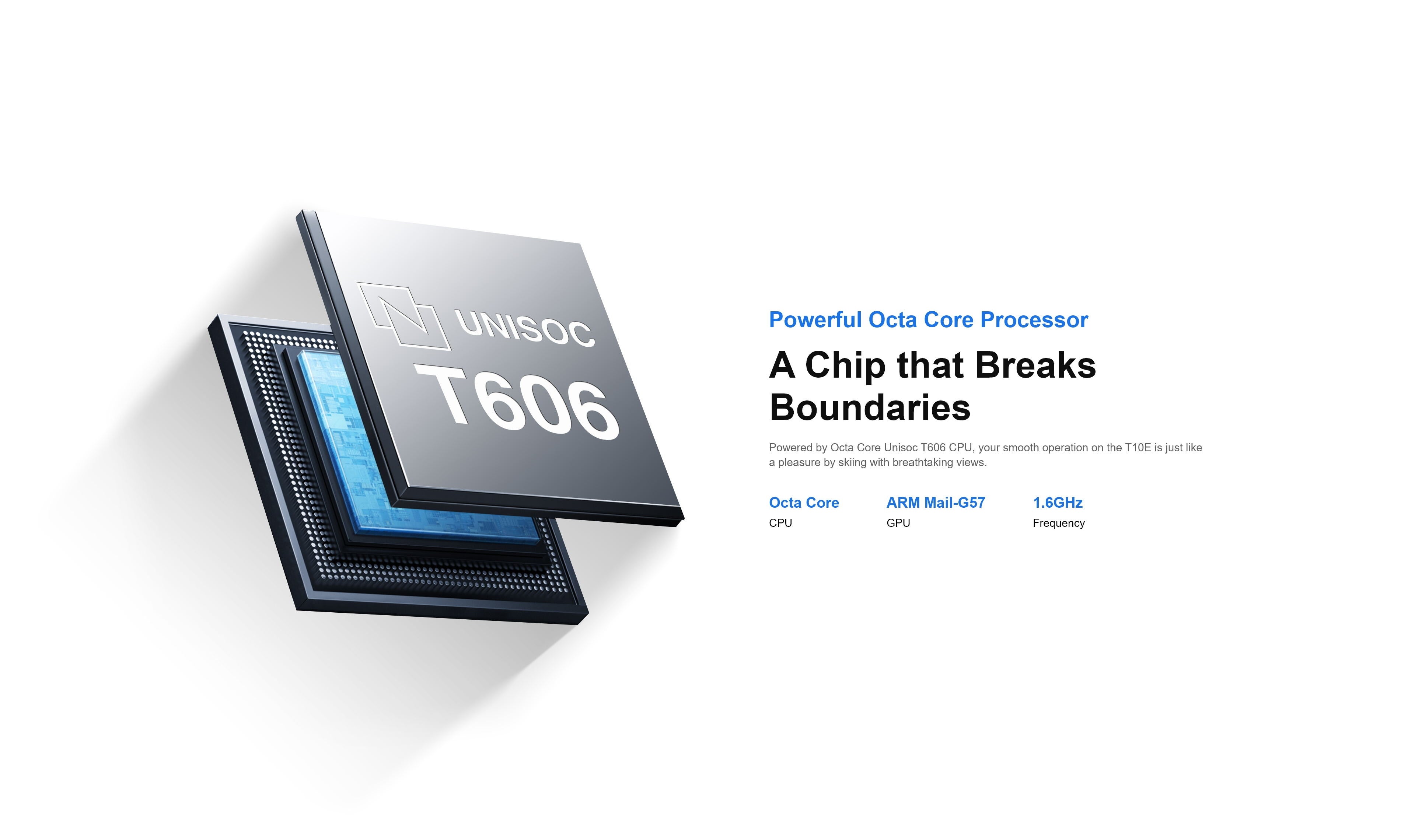 UNISOC T606は、12nmプロセス技術を採用したミッドレンジからハイエンドのモバイル・プロセッサーです。 2つの高性能ARM Cortex-A75コアと、よりエネルギー効率の高い6つのARM Cortex-A55コアで構成されるオクタコアプロセッサです。 この組み合わせは、性能とエネルギー効率の優れたバランスを実現し、激しいタスクを処理しながらデバイスをスムーズに動作させ、日常使用時のバッテリー寿命を節約します。
