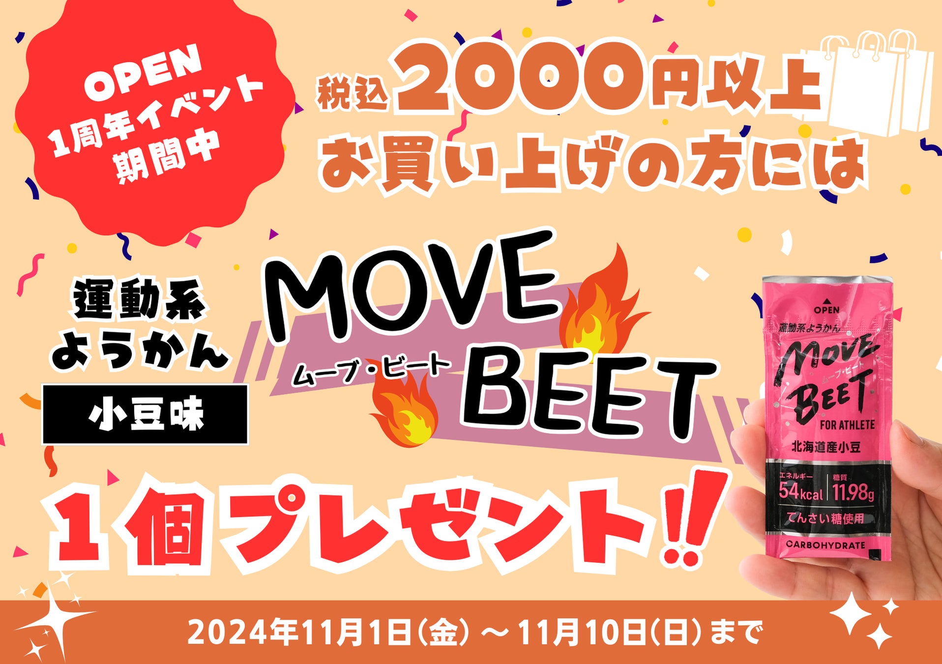 MOVE BEET(運動系ようかん)を1個プレゼント
