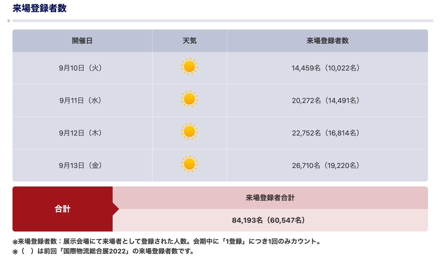 アジア最大級の専門展示会として2年に1度開催し、拡大・成長を続けている「国際物流総合展」。今年は2022年度の約1.4倍となる8.4万人が来場しました。入口付近のエリアは大きな盛り上がりを見せており、今回eve autonomyのブースは東7ホールと最も入り口から遠い場所となりましたが、それでも「eve autoを見に来ました」と言ってくださるお客様が一定数いらっしゃいました。