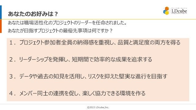 ワークショップを疑似体験できる記事:https://ldcube.jp/blog/communication366