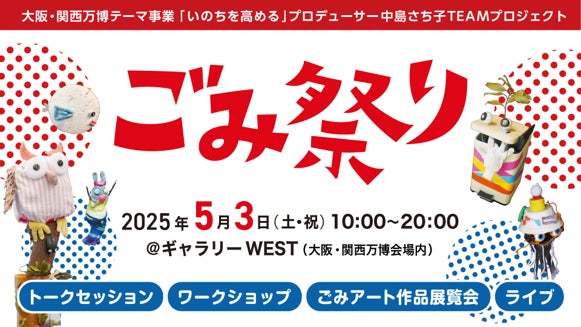 株式会社steAm(代表取締役 中島さち子:東京都豊島区)は、大阪・関西万博が伝える資源循環への取組として”ごみ”に着目したイベント「ごみ祭り」を、2025年5月3日(土・祝)に大阪・関西万博会場内ギャラリーWESTにて開催致します。(主催:2025年日本国際博覧会協会 運営:株式会社NKB)中島と志を同じくする仲間で3年前から各地でごみを拾う活動を始めました。捨てるものと決めつけられていたごみに対し「本当にただのごみでしかないの?」という問いを投げかけ、アートに変身させるプロジェクトを推進、去る3月16日(日)に「ごみアートコンテスト」を開催、入賞作品を展示します。また、ごみアーティストとしてガーナを中心に世界で活躍する長坂真護氏を迎え、現地とつないでのオンラインセッション、会場では「ごみ事情inアジア」、「ゴミと万博」と題したトークが繰り広げられます。PC解体体験、ゴミ楽器作り、膜端材を活用したワークショップも実施、フィナーレを飾るのは、中島率いる多国籍バンド「KURAGE Band」のライブです。高校生が制作するごみ楽器との協奏も行う予定です。どんなものにも価値がある、それは自分自身で創り出せるのだ!ということを体感いただける機会になればと願っています。