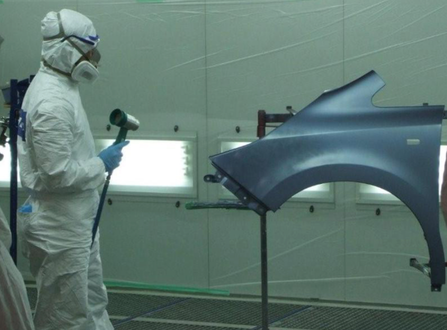 産業別のVOC排出割合の4割を占めているのが工業塗装であり、作業の工程や方法、環境の見直しや、低VOC塗料への転換などを早急に行うことが求められています。一方で、日本では新車製造においては水性塗料への転換が進んできたものの、修理などを実施する板金塗装の現場では未だに油性塗料も使用されています。そこには次のような理由があります。