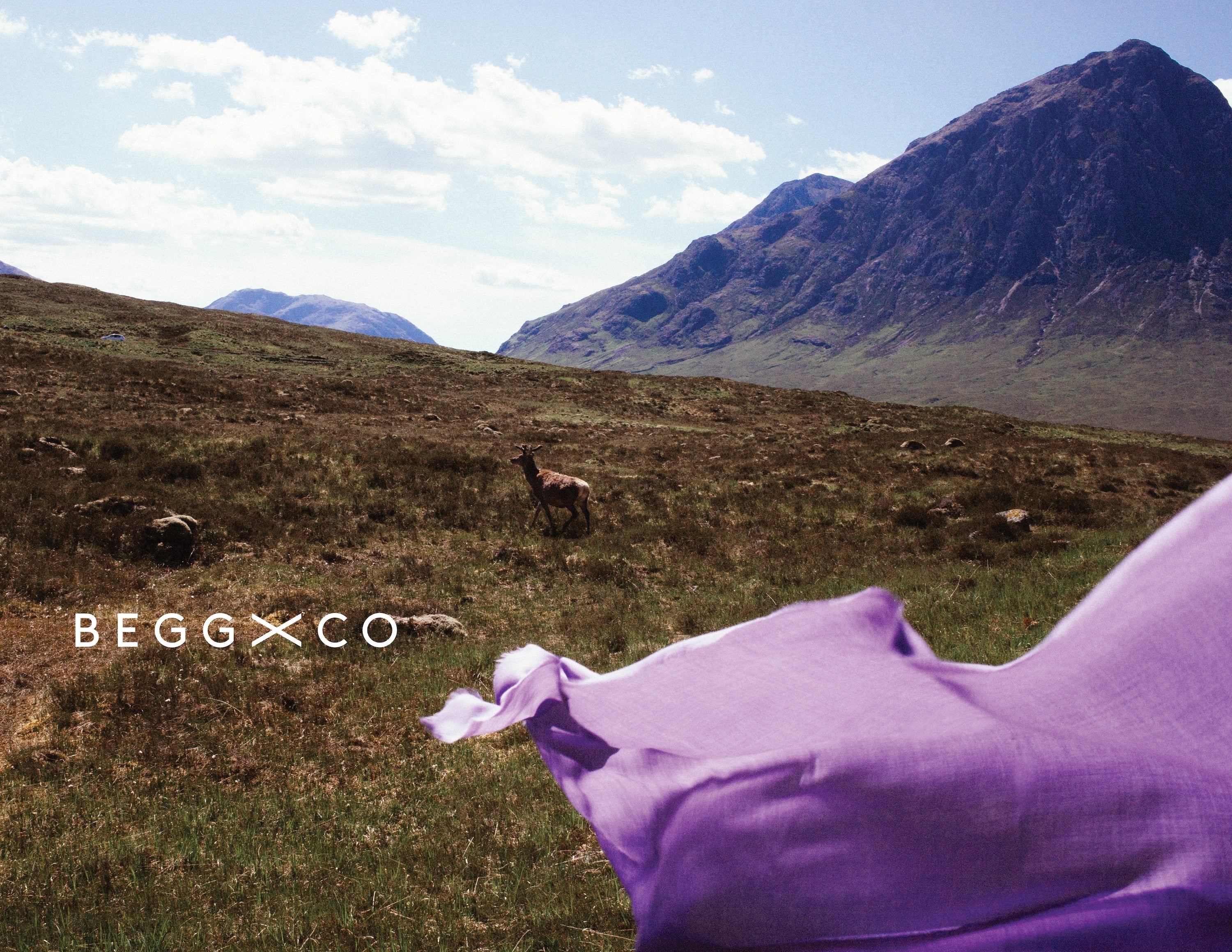 1866年創業の「BEGG X CO(ベグ アンド コー)」は、150年以上にわたるスコットランドの伝統を活かし、古くから伝わる技術と革新的なデザイン、そして最先端技術を融合させ、色彩と創造性が融合した現代のライフスタイルにふさわしいカシミヤ製品を生み出しています。なかでも、スコットランドに受け継がれてきた植物を用いたブラッシング作業は、BEGG X COを象徴する工程のひとつ。繊維をやさしく起毛させることで、ふっくらとしたボリューム感、なめらかな風合い、そして自然な艶を引き出します。