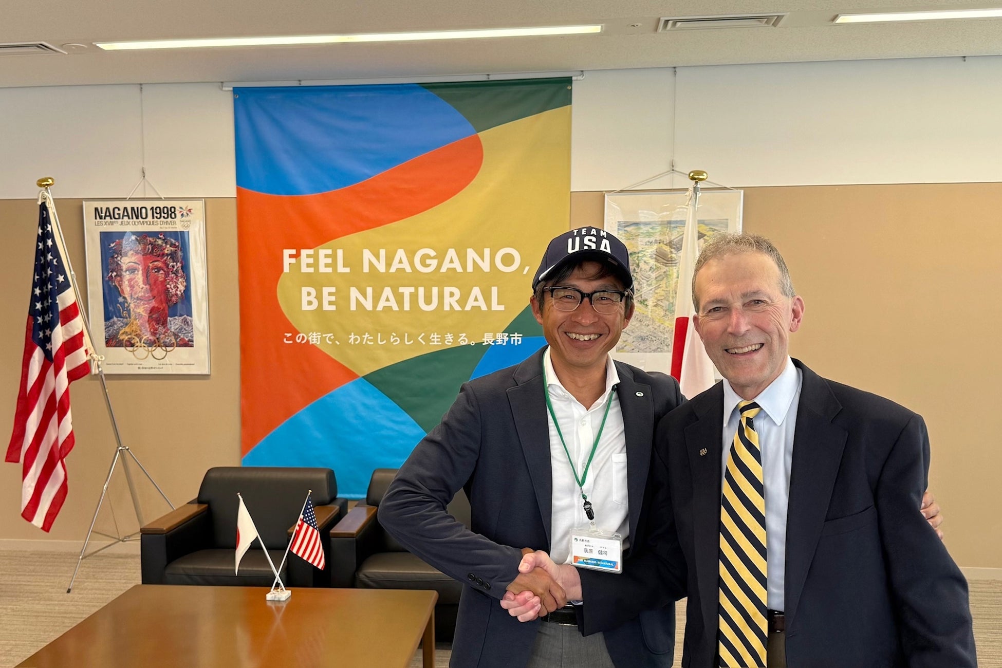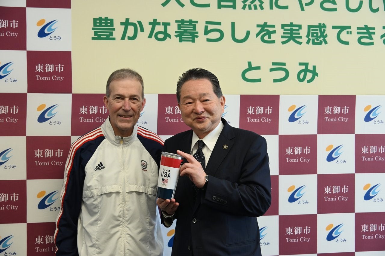 本キャンプの実施に向け、USOPCチームリーダーであるランドール・ウィルバー氏(Randall Wilber)が東御市を訪問し、花岡利夫 東御市長と面会。