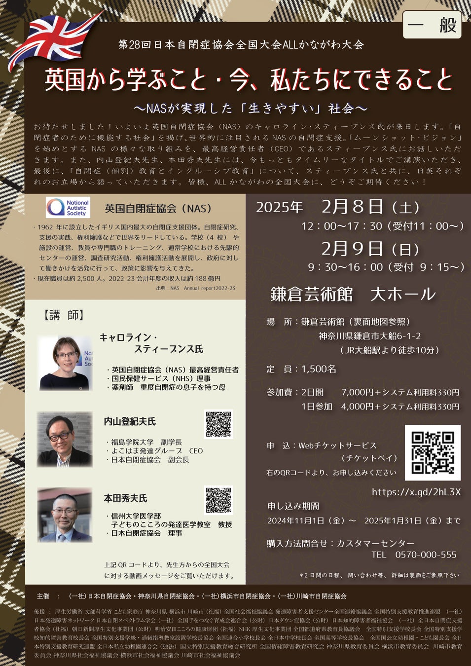 日本自閉症協会全国大会ALLかながわ大会記念講演「英国から学ぶこと・今、私たちにできること~NASが実現した『生きやすい』社会~」の申し込み受付を「チケットペイ」にて販売開始!