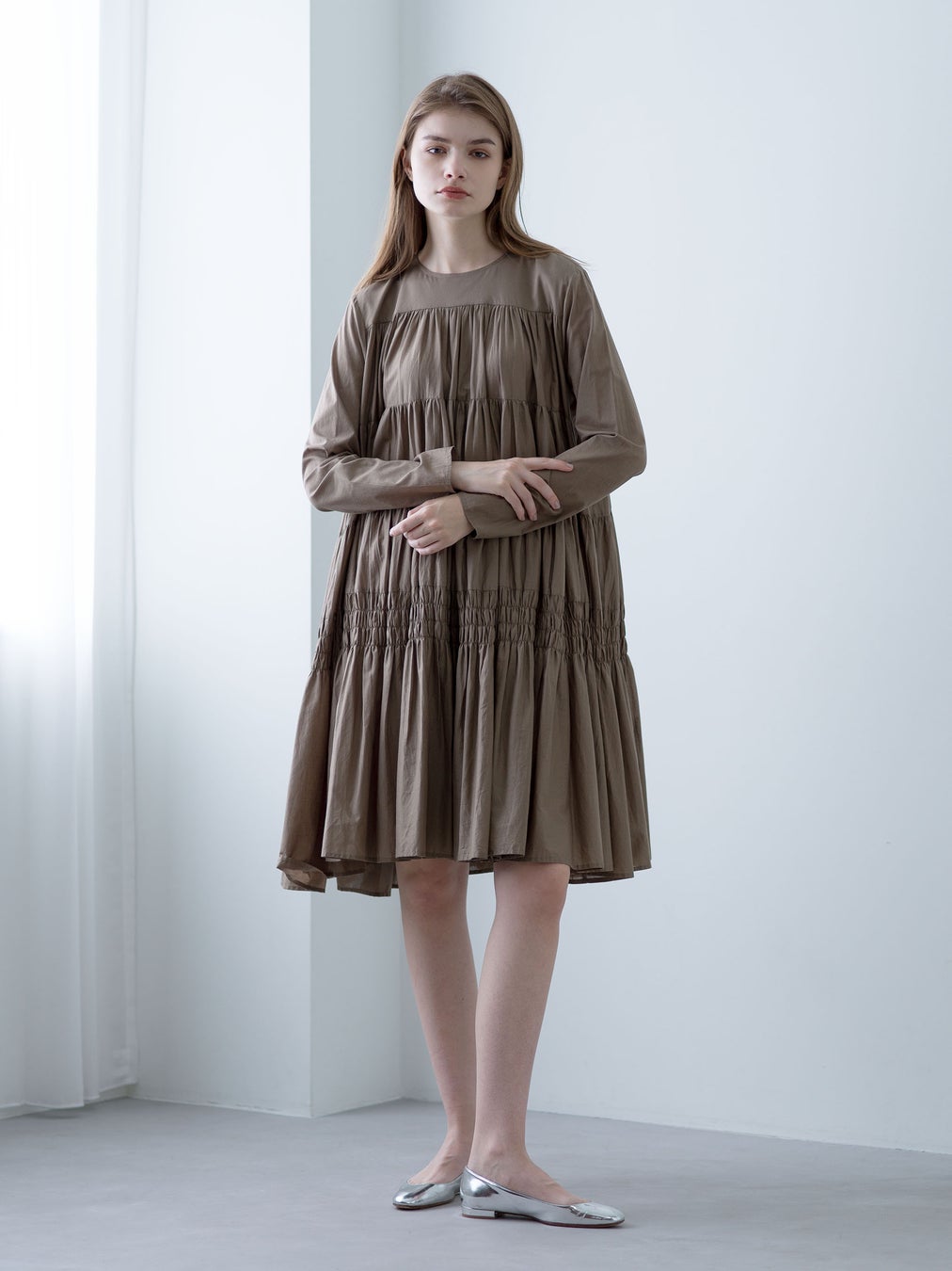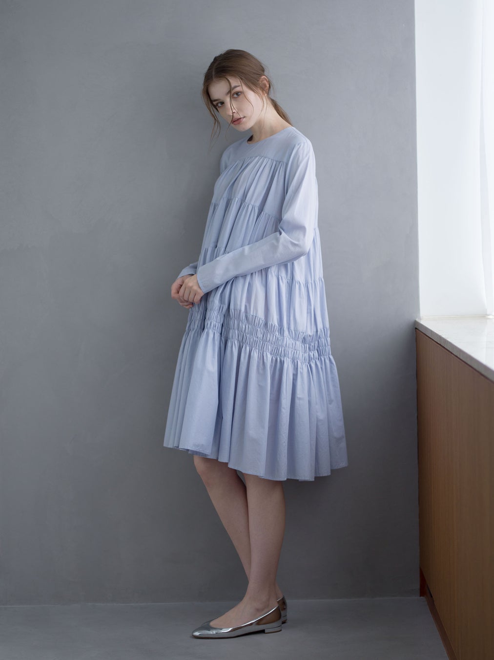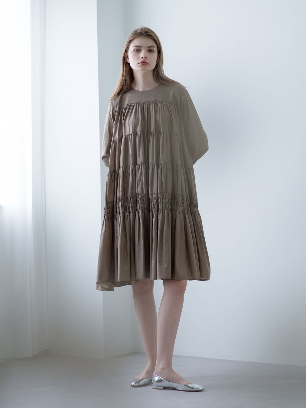 マーレットの立ち上げ以来、世界中で愛され続けているシグネチャードレス「SOLIMAN(ソリマン)」。すっきりとしたヨークからボリュームたっぷりのティアードが裾まで広がるデザインで、その着心地と着た時の高揚感がたまらない逸品です。そんな大人気ミニドレスSOLIMANのシルエットはキープしつつ、1枚で着られるようにスモッキング刺繍をプラスして着丈を長くした「SOLIMAN MIDI」が誕生いたしました。セレクトショップのバイヤーやお客様からも「SOLIMANを一枚で素敵に着たい!」とご要望があり実現したドレスです。丈が少し長くなったことで、一枚で着ることに抵抗があった方や身長が高い方でも心置きなく着られるようになりました。秋に映えるオレンジ、ブラウン、ライトブルーの3色展開です。