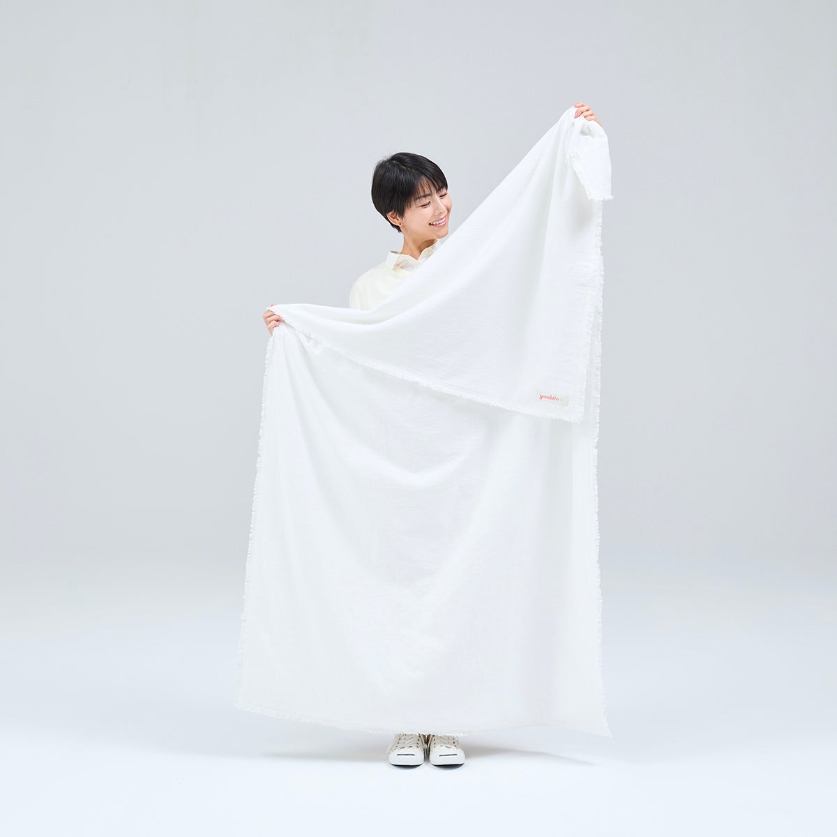 リネンを贅沢に配合し、丁寧に施されたシワ加工が、広げた瞬間から自然な風合いとエアリー感を引き立てます。リラックスした空間を演出しながら、上質なひとときを感じさせます。