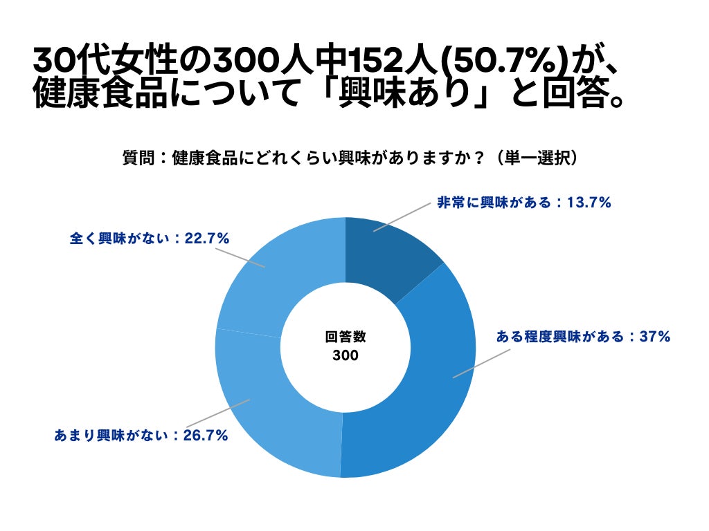 30代女性の300人中152人(50.7%)が、 健康食品について「興味あり」と回答【健康食品に関するアンケート】