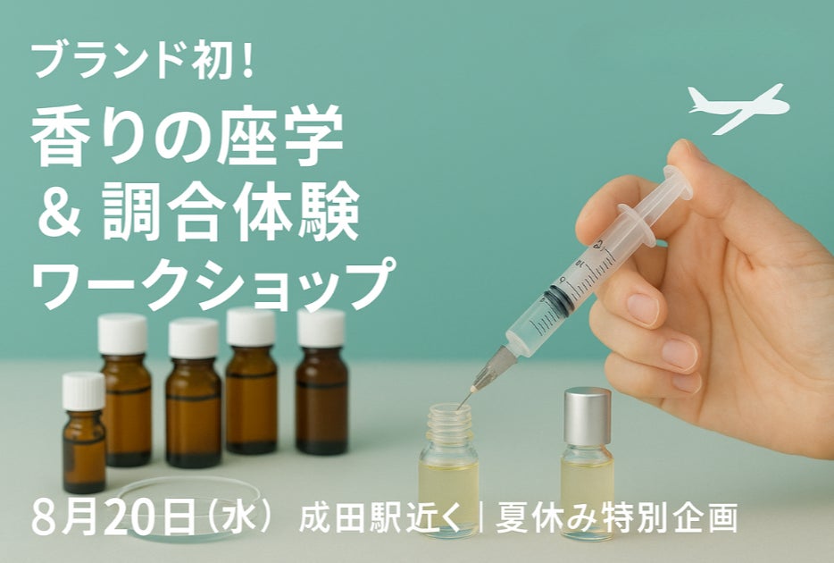 京都発のオーダーメイドフレグランス専門店「MY ONLY FRAGRANCE」を運営する株式会社フレグランスプロジェクト(本社:京都府京都市、代表取締役:和田慎平)は、2025年8月20日(水)14時より、千葉県成田市の特設会場(「成田レンタルスペース浪漫館」、JR成田駅より徒歩6分)にて、ブランドとして初めてのワークショップを開催いたします。