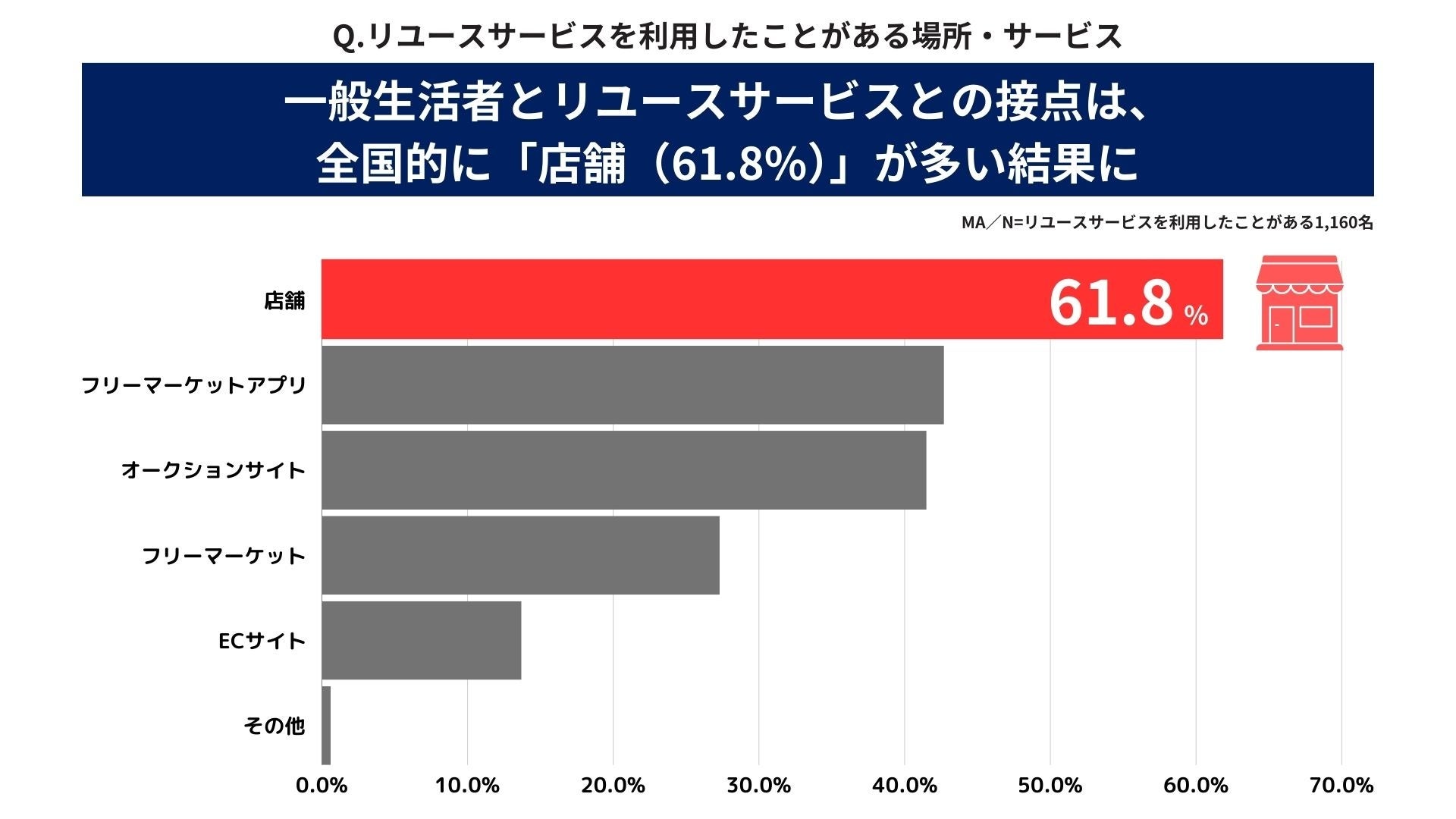 4. リユースサービスとの接点は、全国的に「店舗(61.8%)」が多い結果に。