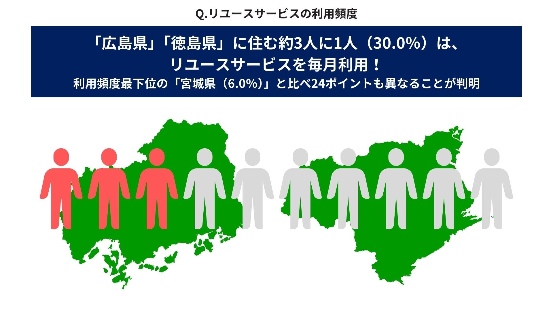 いると回答。月に1回以上リユースサービスを利用している割合が最も低い「宮城県(6.0%)」と比べ、