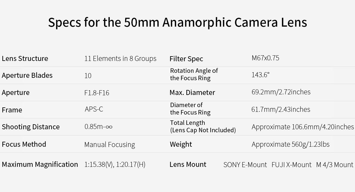 SIRUI初のAPS-C 50mm F1.8 1.33Xアナモルフィックレンズ