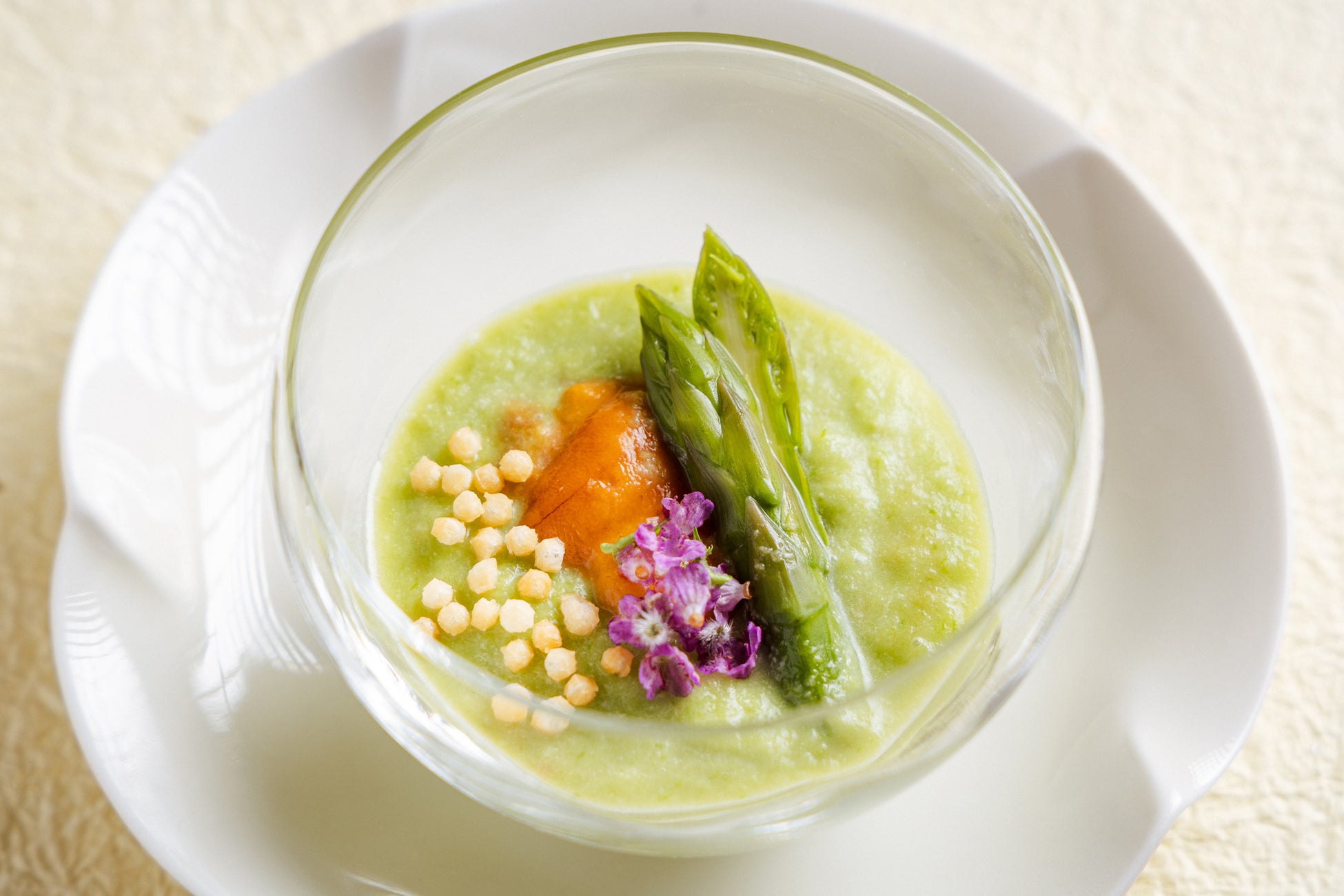 雲丹の塩味とアスパラガスの甘みの塩梅をお楽しみください。