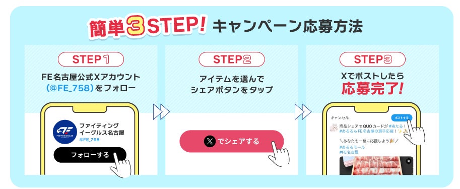 ③Xで「#あるるのファイティングイーグルス名古屋応援キャンペーン」をつけてポストすれば応募完了!